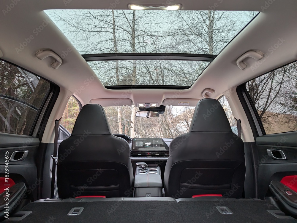 A Stylish and Contemporary Interior of a Modern Car Featuring a Sunroof