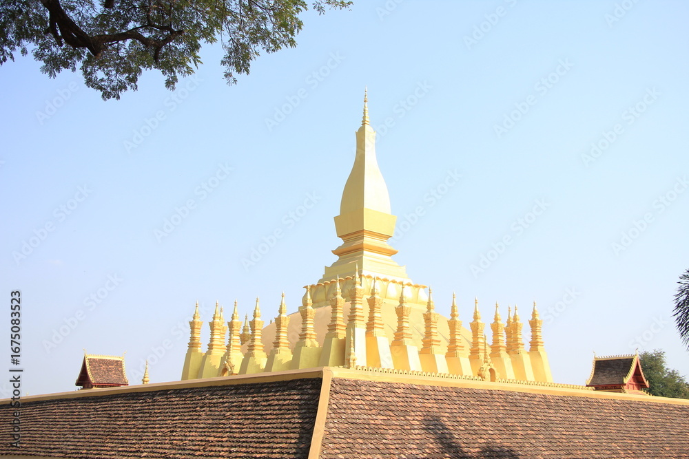 Iconic Golden Stupa in Pha That Luang in Vientiane, Laos