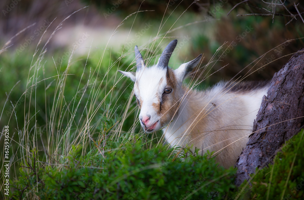 Goat Kid Enjoying Summer Grazing on Herfol Island in Hvaler, Norway
