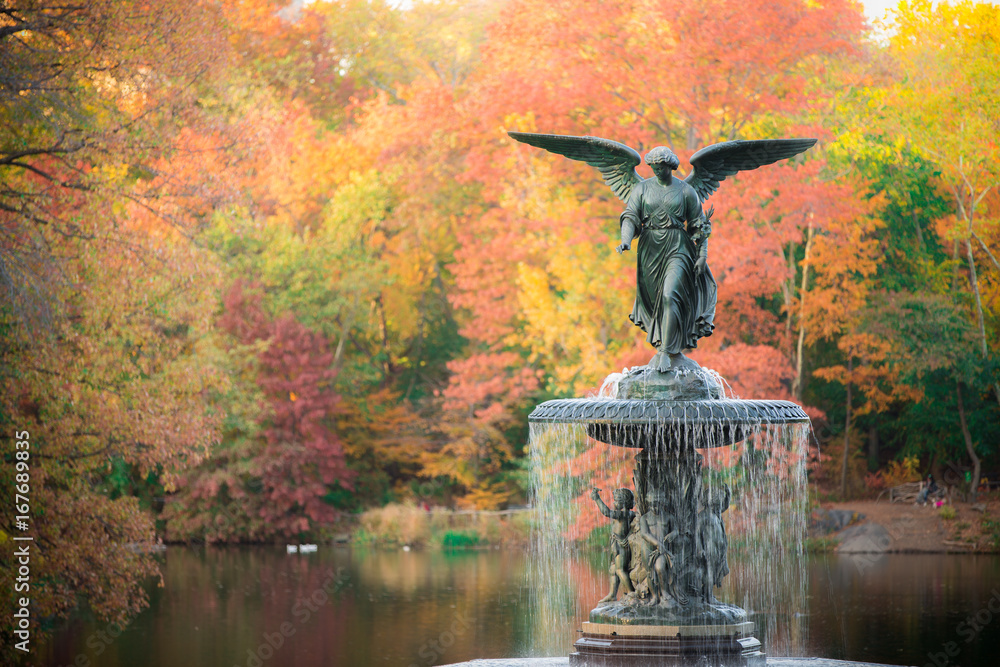 Bethesda Fountain in fall foliage Central Park, New York City