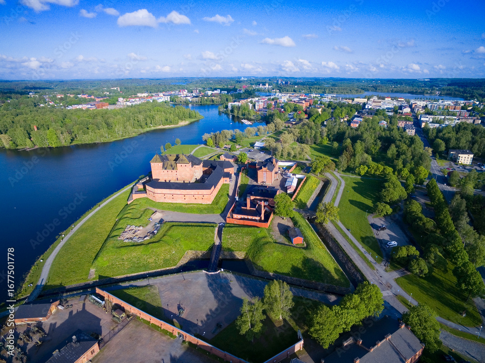 Aerial view of medieval Häme castle in Hämeenlinna, Finland