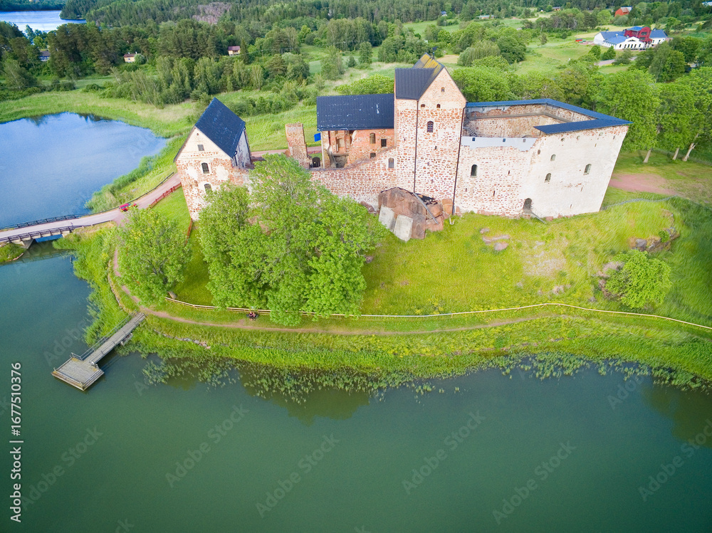 Aerial view of medieval Kastelholm castle in Åland islands, Finland
