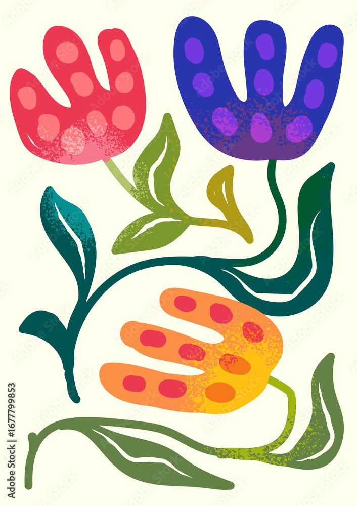 Colourful Wild Abstract Garden Flower Set