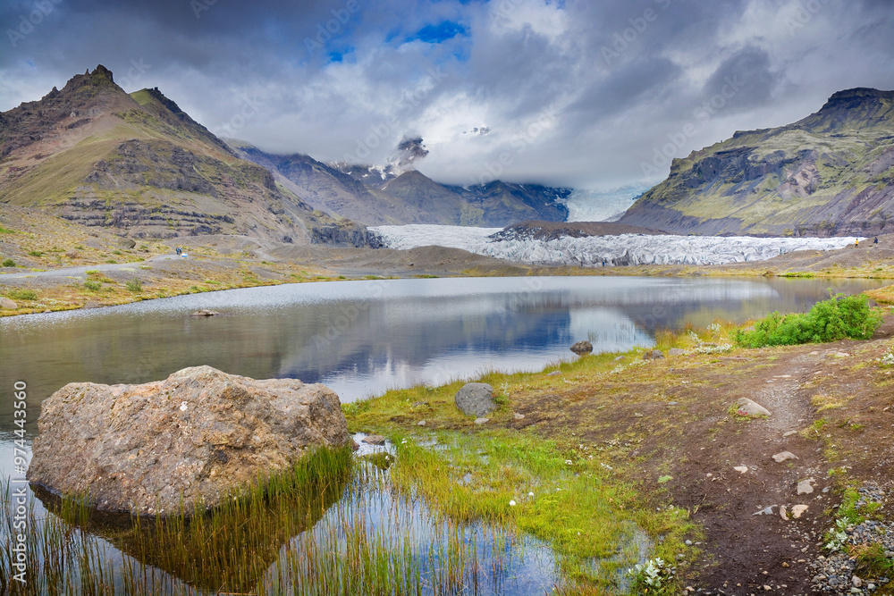 Man eating a toasted ham and cheese sandwich outdoors, traveler eating lunch at his camping site. Close-up view of melted cheese stretching.