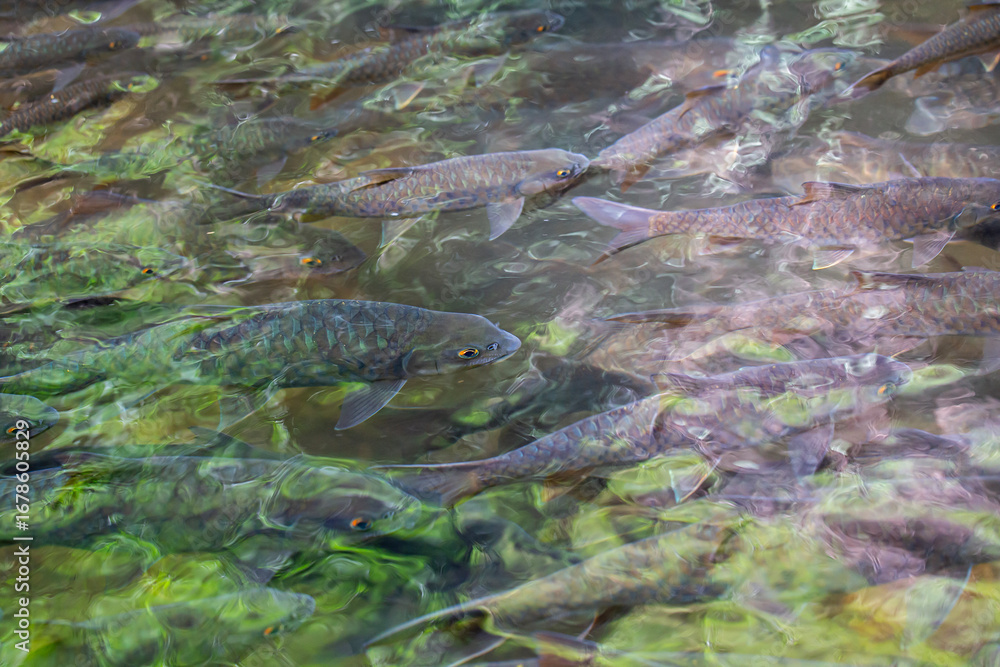 selective focus of fish in clearly water
