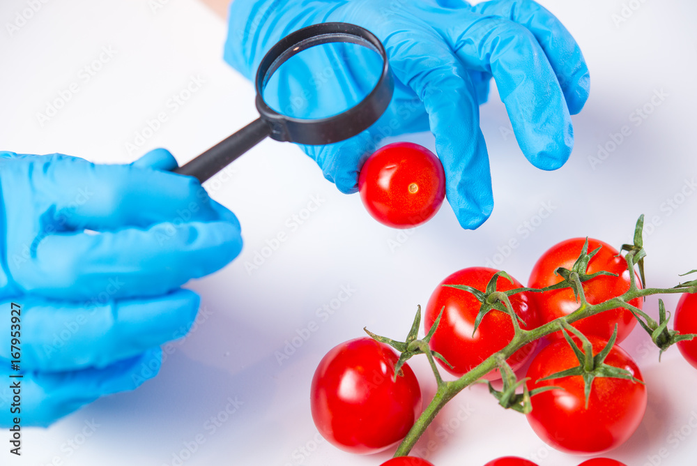 Research of various vegetables in the laboratory on GMOs and harmful substances