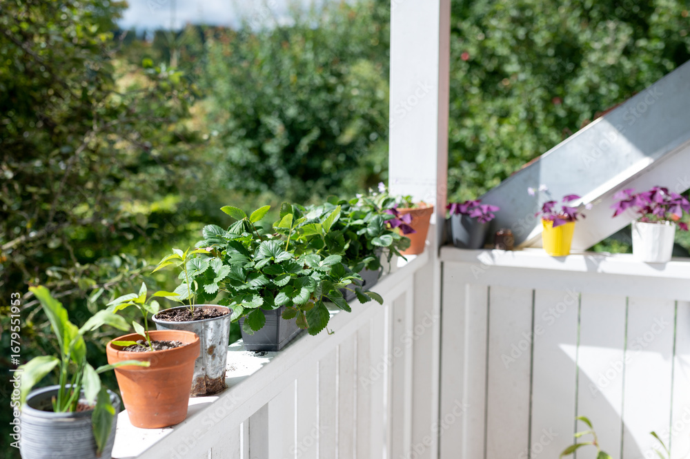 Deck gardening fresh herbs wooden planter sustainable homegrown vegetables