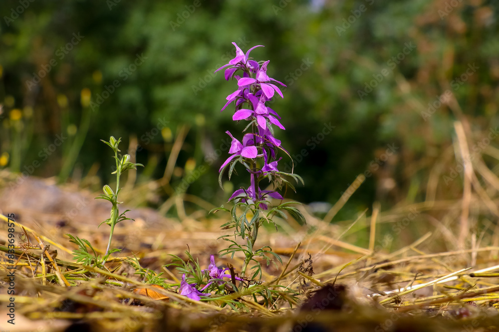 Dried scarlet runner beans in a white bowl on linen. Raw and large seeds of purple colored speckled runner beans, a variety of Phaseolus coccineus, also known as multiflora bean, butter, or fire bean.