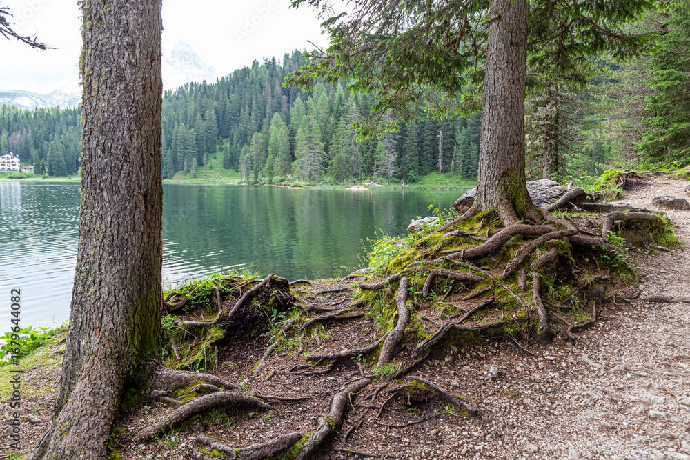 View of the Lake Misurina ( Lago di Misurina). Dolomites. Italy.