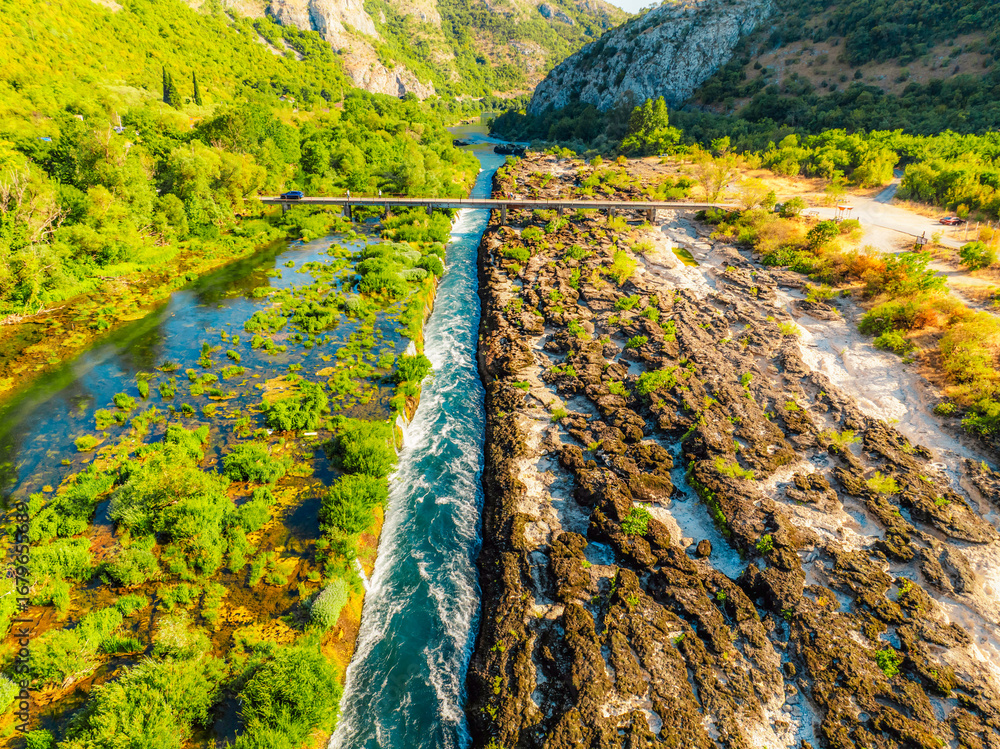 Flowing Bunski Kanal Most in Bacevici near Mostar in Bosnia and Herzegovina