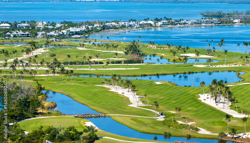 Golf course on ocean shore in southwest Florida. Seaside golfing field in Boca Grande