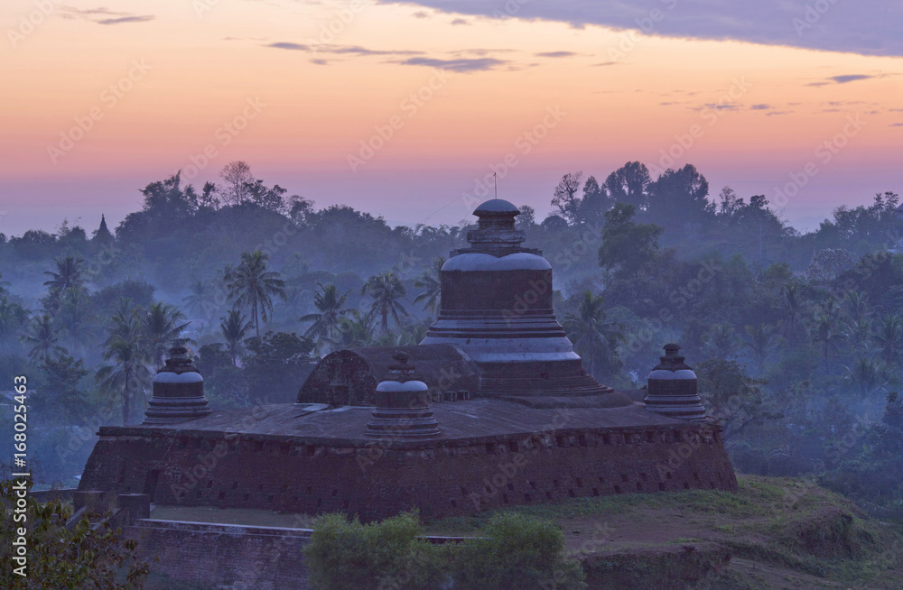 Famous ancient Htukkanthein stupa at sunset in Mrauk U, Rakhine state of Myanmar