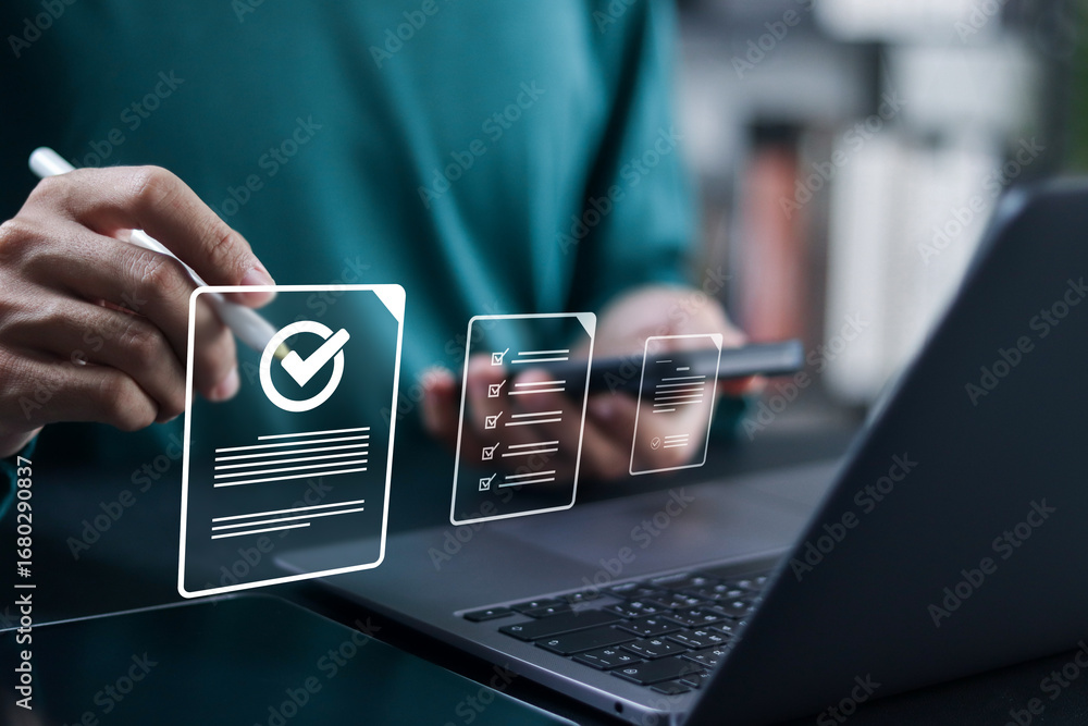 Approve document for business process workflow illustrating management approval and and project approve concept. Checkmark of success accepted approve.
