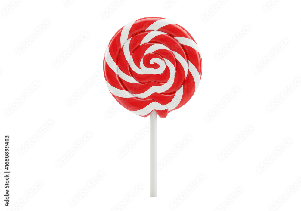 Isolated sweet striped red and white lollipop on a stick, tasty candy treat concept
