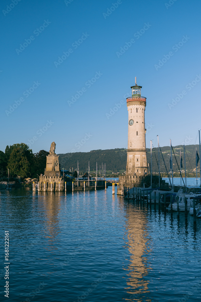 Lindau lighthouse and lion statue Lake Constance Bavaria