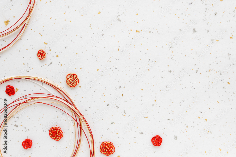 白に金銀箔の和紙に赤い水引と梅の背景素材