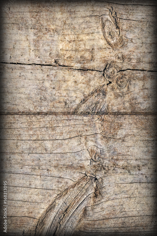 Old Weathered Cracked Knotted Pinewood Plank Vignetted Grunge Texture