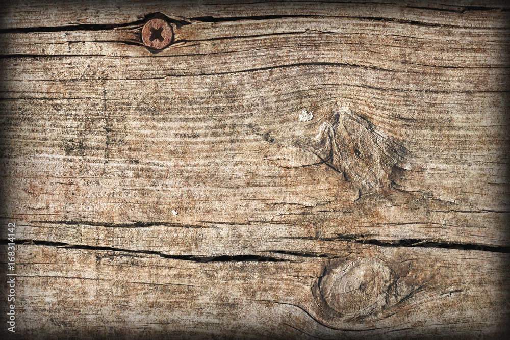 Old Weathered Cracked Knotted Pine Wood Floorboards Vignetted Grunge Texture