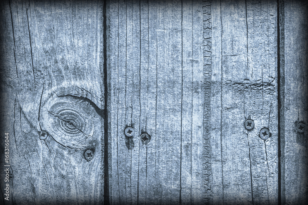 Old Weathered Cracked Knotted Powder Blue Pinewood Floorboards Vignetted Grunge Texture
