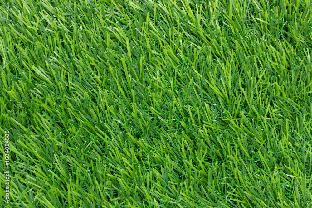 A full-frame, overhead shot of a vibrant green artificial grass or synthetic turf surface.