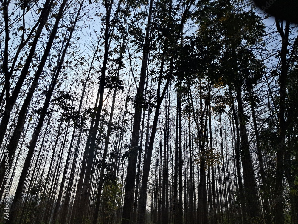 silhouette of teak forest in the dry season
