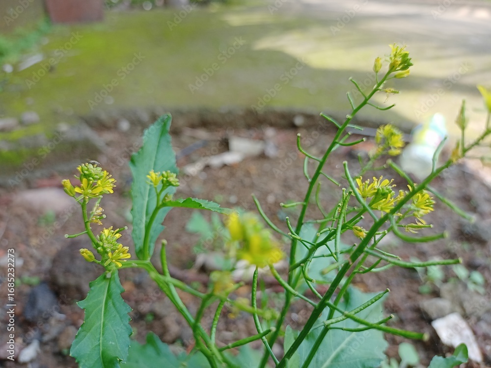 Tiny Yellow Wildflower Buds Blooming in Natural Garden