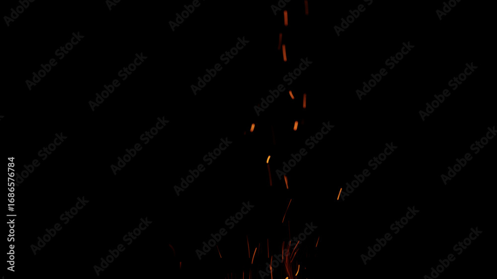 sparks and embers from campfire flying over black background