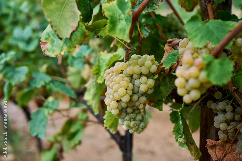 Ripe green grape in vineyard growing natural. Green grape on the vine in garden
