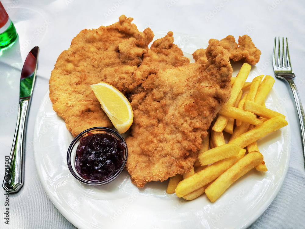 Plate with Schnitzel with French fries