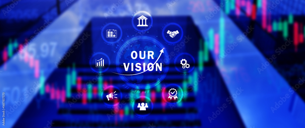 Our vision, Business, technology, internet and network concept. Virtual screen of the future and sees the inscription, Our vision concept.