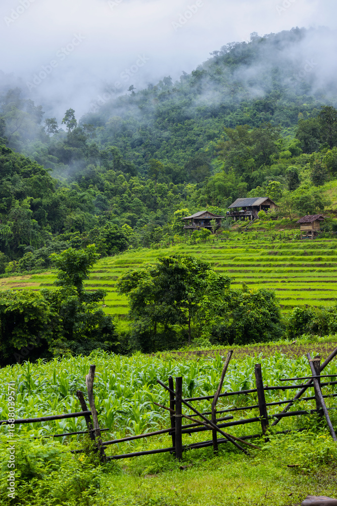 Rainy season rice planting at Ke-le-hi village, Tak province, Thailand