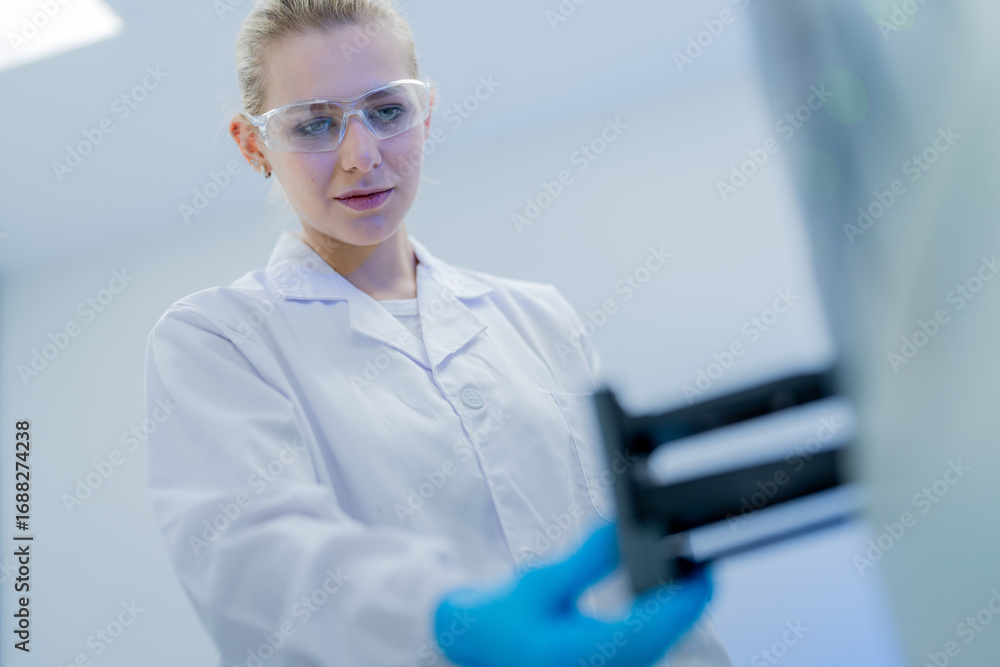 Laboratory technician conducting experiments in a modern lab space during daylight hours