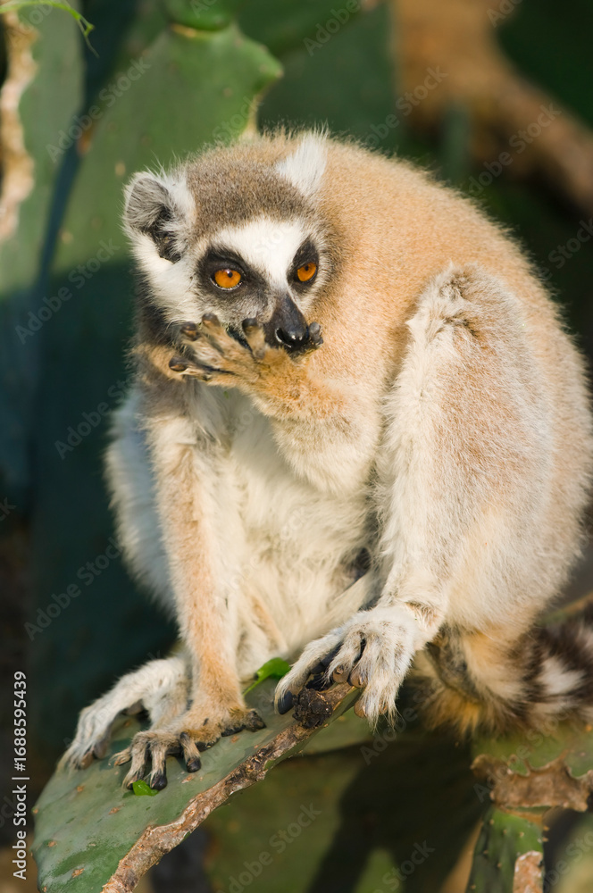 Ring-tailed Lemur (Lemur catta) on cactus, Near Threatened, Berenty nature reserve, Madagascar