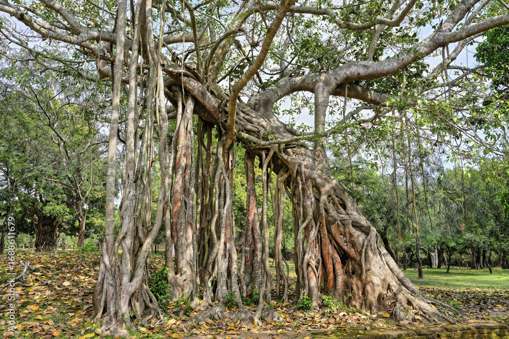 Banyan tree in the Polonnaruwa ruins of the garden-city, Polonnaruwa, Sri Lanka