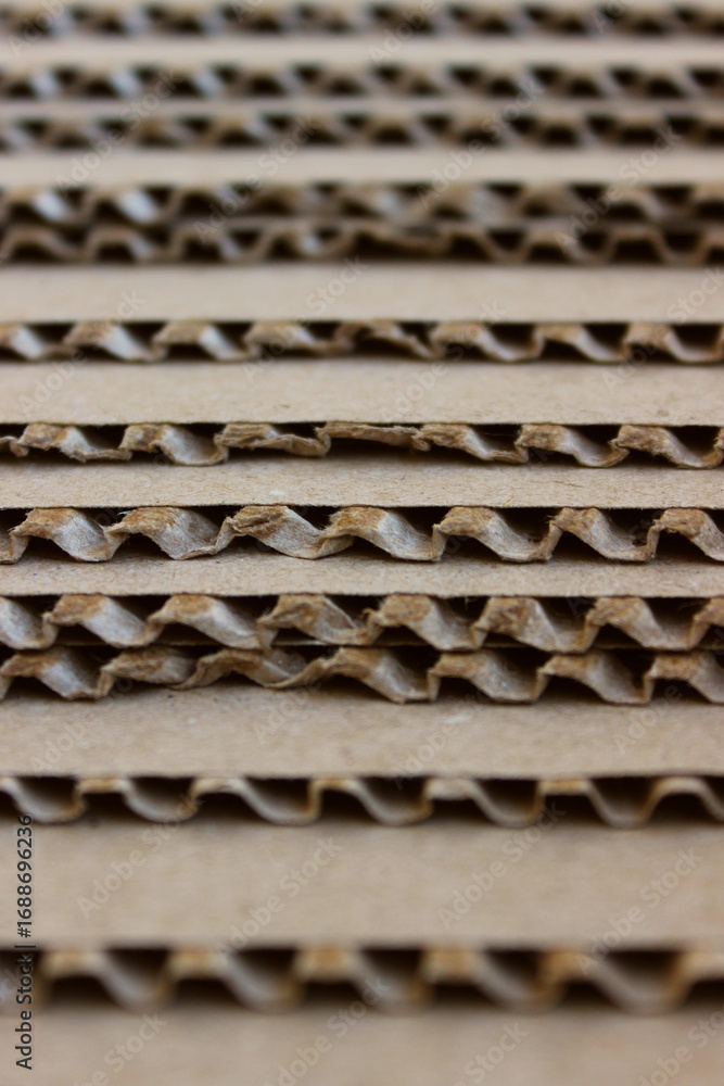 Wavy texture of cardboard panels for packaging during transportation of goods with soft focus