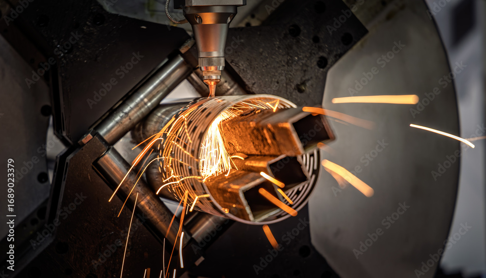 CNC Laser and gas cutting of metal, modern industrial technology.