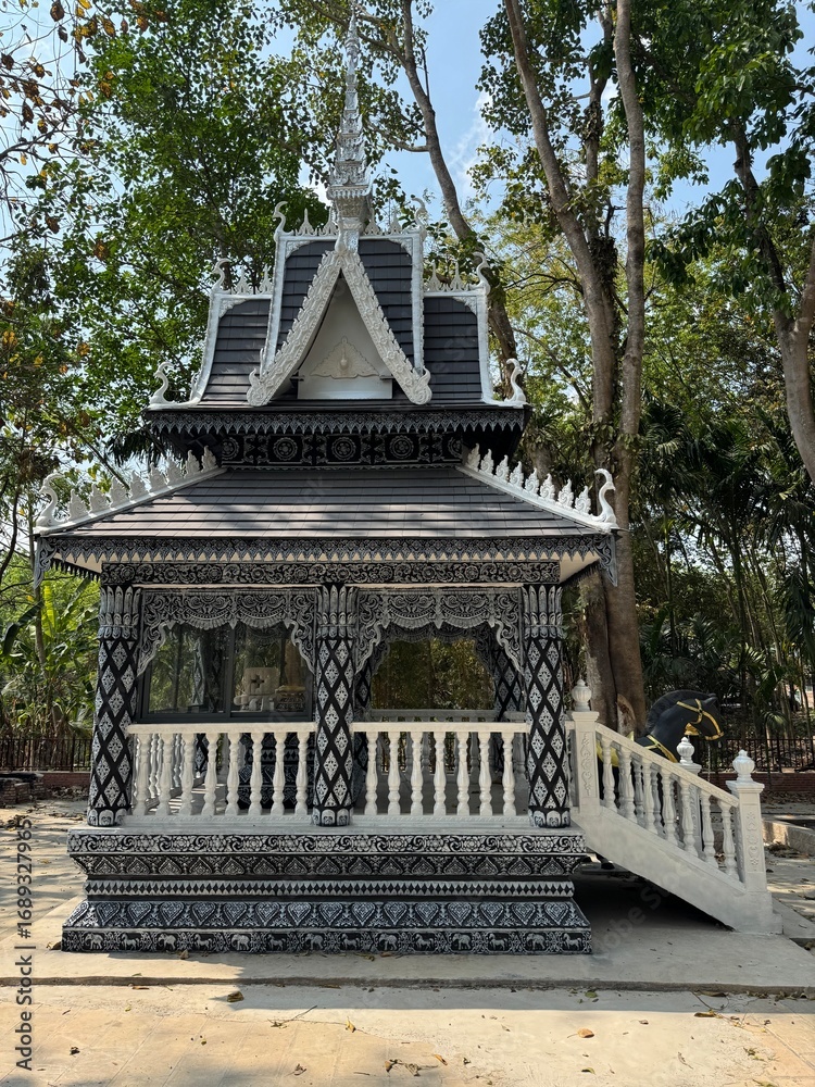 Black and White Decorated Temple, Dai Buddhist Architecture in Xishuangbanna, Yunnan, China