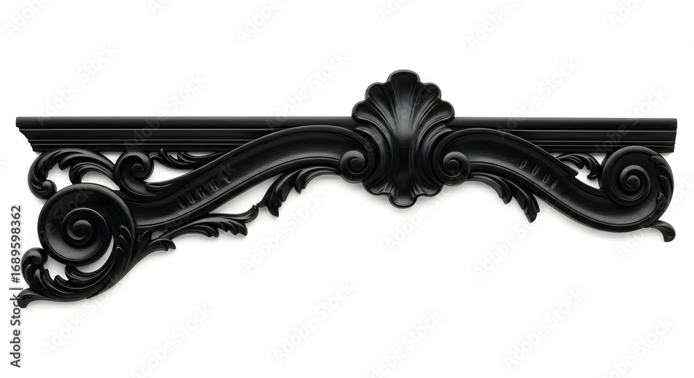 Elegant black ornate architectural flourish adds sophisticated vintage charm to interiors and designs