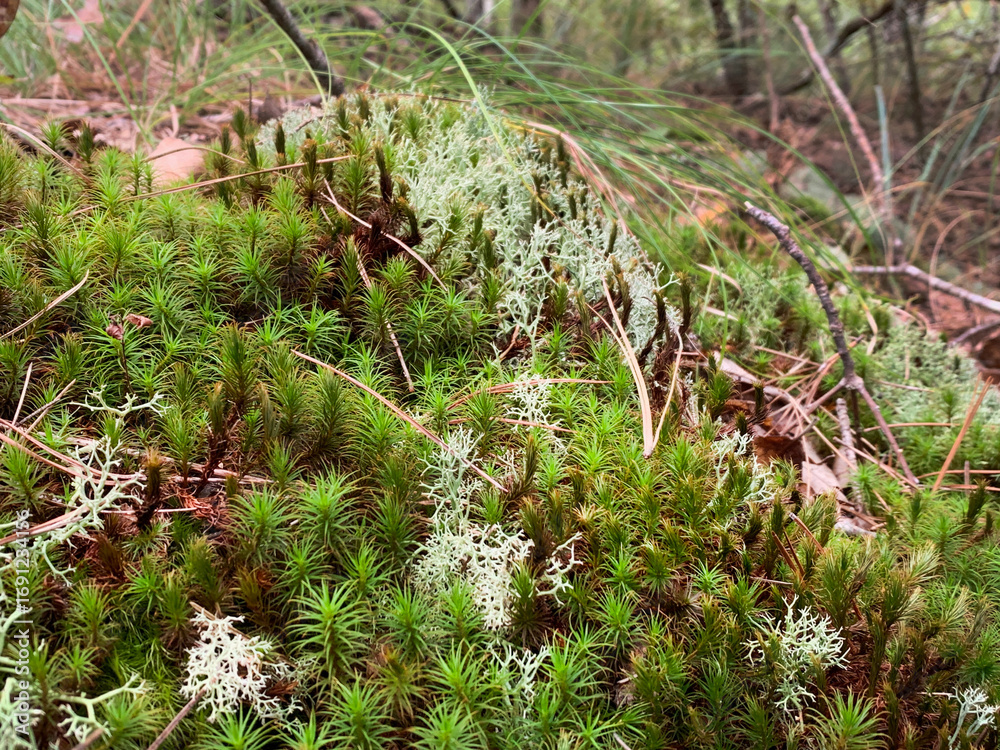 Moss and lichen on the forest floor in Arkansas closeup
