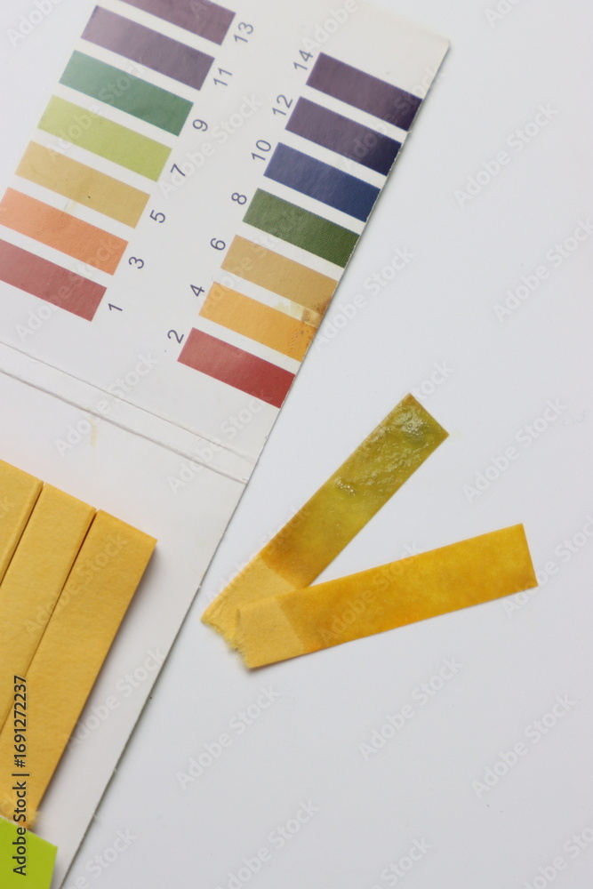 pH test strips in a white background with copy space