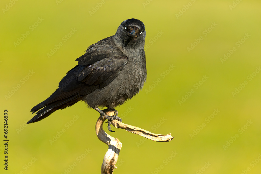 Western jackdaw at dawn in its territory in a Mediterranean steppe area