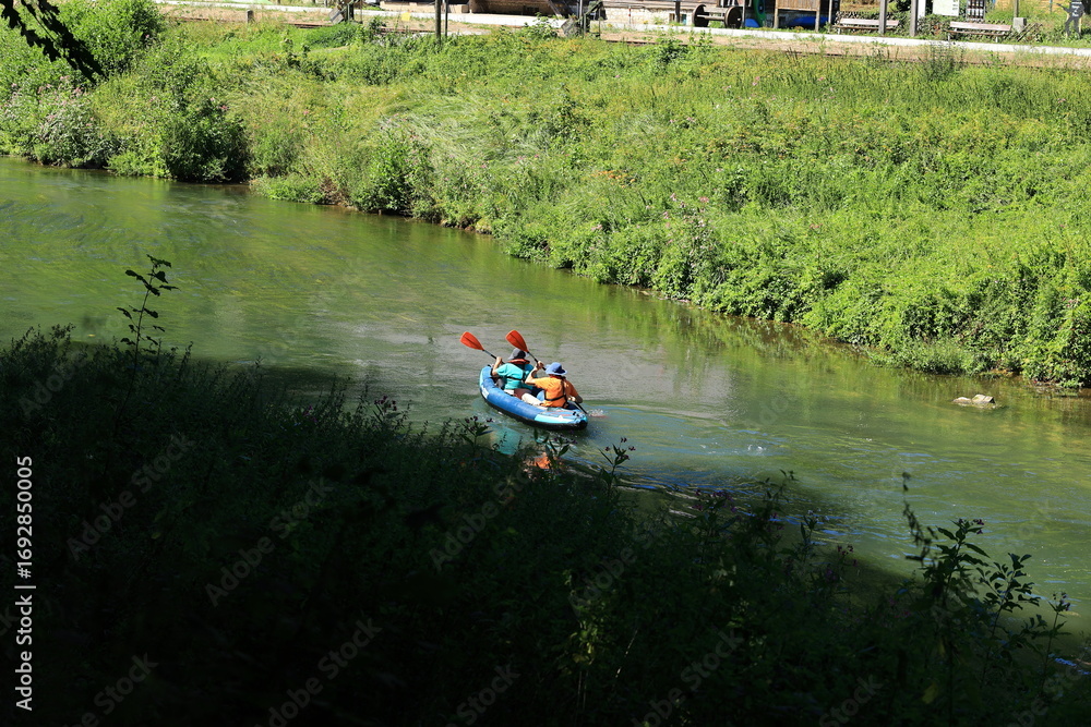 Kanufahrer auf der Wiesent bei der Stempfermühle in der fränkischen Schweiz