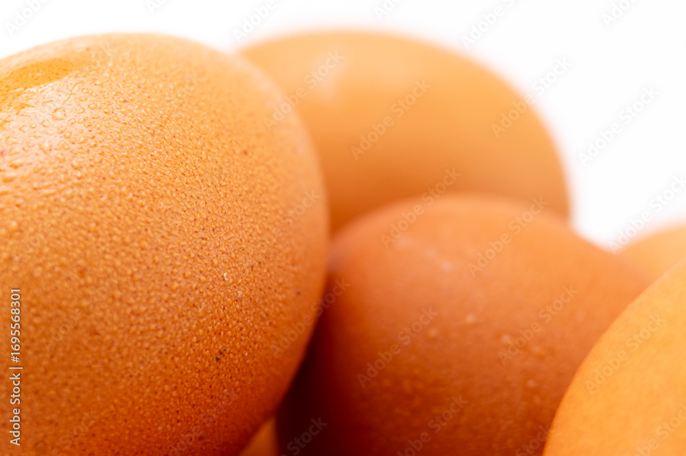 Close-up of Brown Eggs - Fresh, Natural, and Nutritious Food Source on White Background.