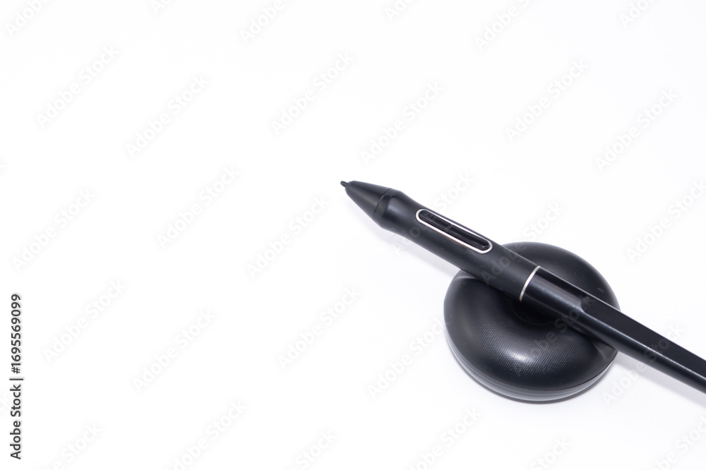 Black Stylus Pen on a Round Stand, Isolated on White Background, Digital Art Tool.