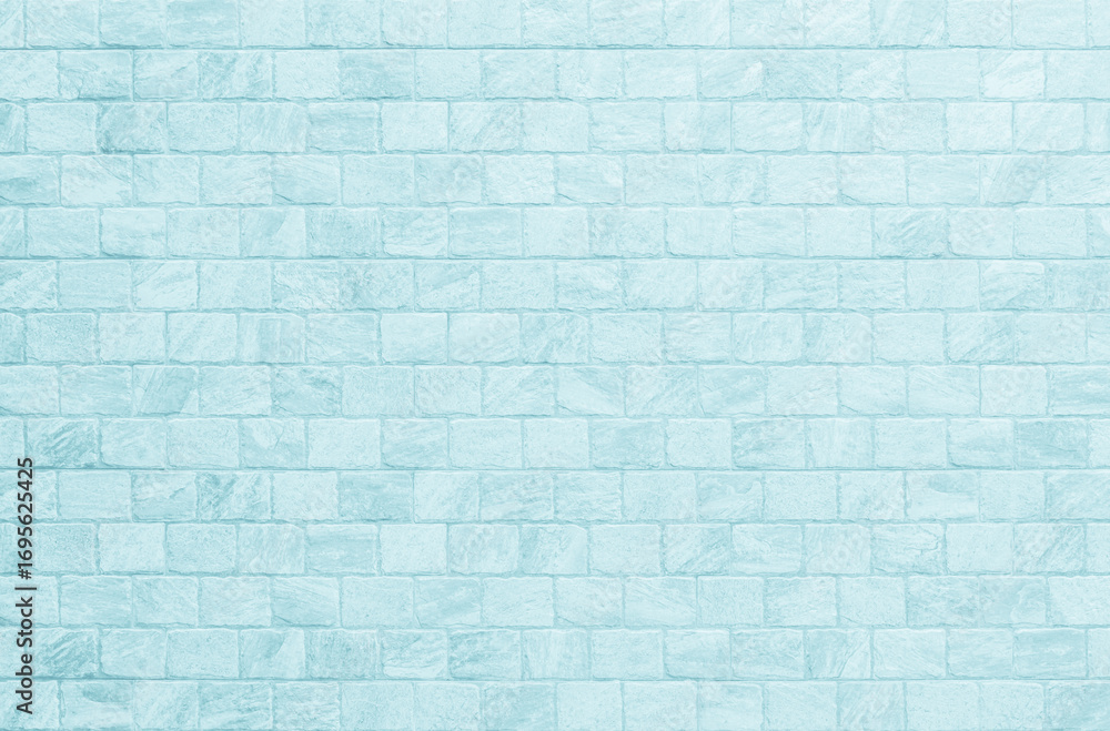 Blue brick concrete stone texture for background in wallpaper. Brick wall and sand stone in plaster of tone vintage. Pattern abstract wall of light cyan color, cement texture mint green for design.