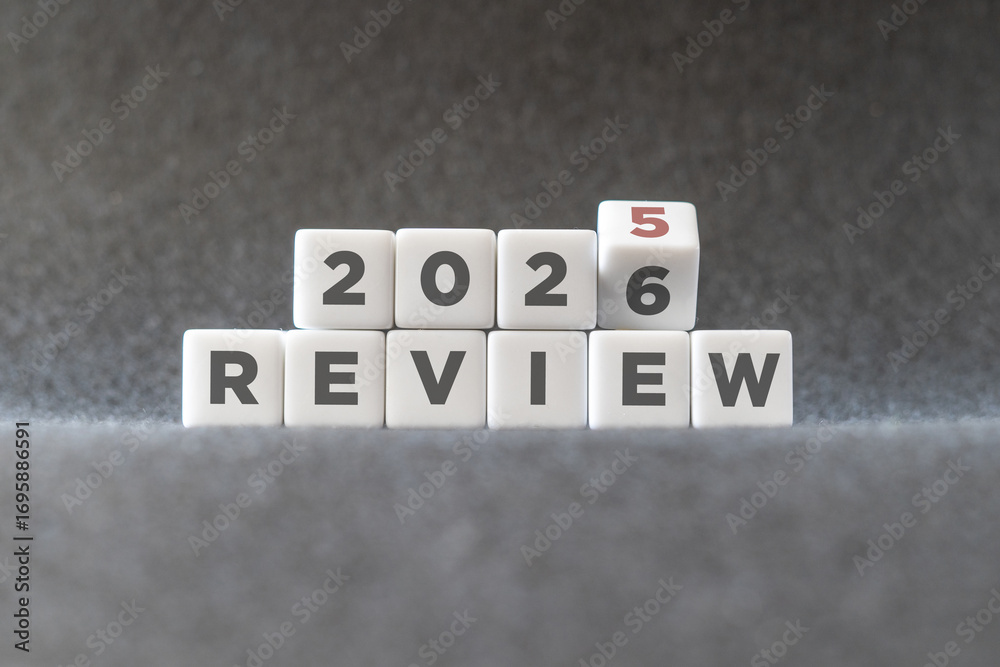 Flipping of 2025 to 2026 on white blocks. 2025 business and customer review for business strategic planning in the next year 2026. End of the year business concept