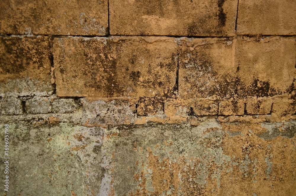 습기로 인한 곰팡이가 핀 시멘트 블록 벽체 질감
