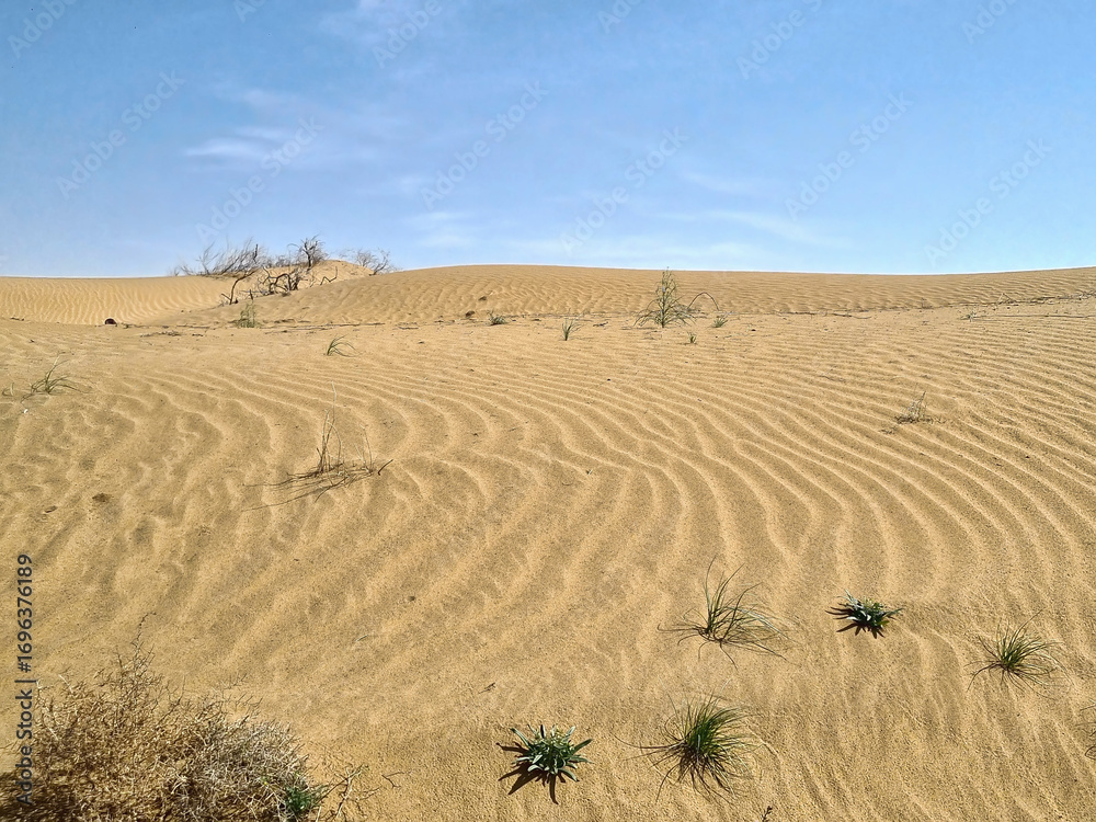Karakum desert in spring. The landscape of the Central Asian desert .