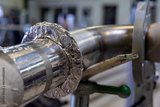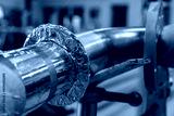 Gros plan sur de la tuyauterie industrielle, montrant les raccords, soudures et la structure métallique.