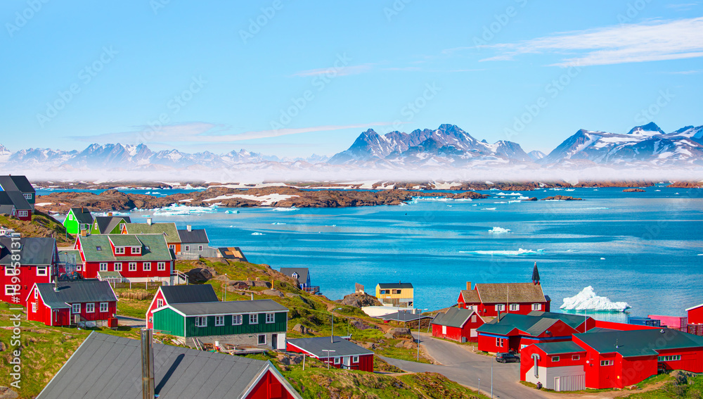 Picturesque village on coast of Greenland - Colorful houses in Tasiilaq, East Greenland
